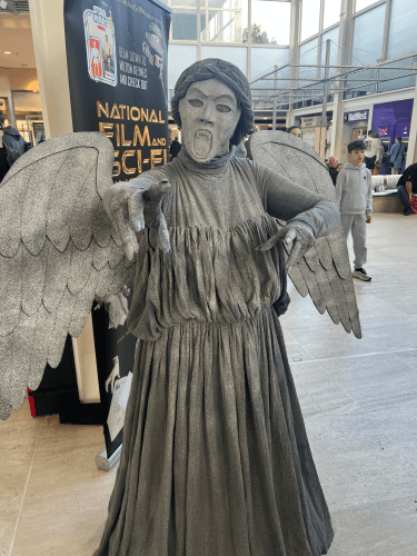 The Weeping Angels made a cameo appearance at the end of the first and only season of the Doctor Who teenage spin-off Class, which teased the Weeping Angels’ home world and the coming of a gigantic Angel! A potential second season of Class would have explored this, however this was not to be.