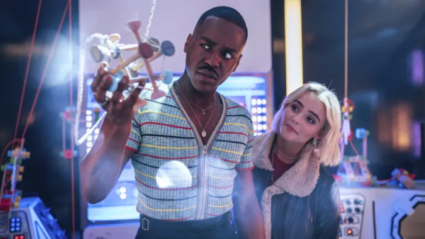 The Fifteenth Doctor (Ncuti Gatwa) met his new companion Ruby Sunday (Millie Gibson) after he visited a church where she was abandoned as a baby. The young Ruby was adopted by her foster mother and lived with her in an apartment in London. The Doctor later tells Ruby and her foster mother that he is adopted as well, as he was found abandoned in The Timeless Children. Ruby’s mother also fostered a baby called Lulubelle, who was later kidnapped by some goblins. The goblins had been causing mayhem in Ruby’s life for some time. But thankfully, the Doctor came to Ruby’s aid. The two of them boarded the Goblin Ship and they rescued the baby Lulubelle from being eaten by the disgusting Goblin King. However, the goblins then went back in time and as revenge, they kidnapped Ruby as a baby. The Doctor returned to the Church on Ruby Road and saved the baby Ruby by destroying the Goblin ship and impaling the Goblin King on the spire of the church. Having put history back on track, the Doctor returned to the present day, where his new companion Ruby Sunday decides to join him for further adventures in time and space. The two depart in the Doctor’s TARDIS, which is noticed by Ruby’s mysterious neighbour Mrs Flood…