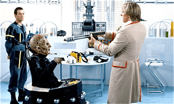 The Daleks have lost the war to the Movellans (Destiny of the Daleks). The Movellans developed a virus that exclusively kills Daleks. The Daleks (with help from mercenaries like Lytton) now seek out Davros to find a cure. Lytton releases Davros from his prison and reveals to him the outcome of the Dalek-Movellan war. Outraged, Davros resolves to find a cure to the Movellan virus. Meanwhile, the Daleks make duplicates of the Fifth Doctor, Tegan and Turlough in order to send them to assassinate the High Council of the Time Lords on Gallifrey. The Doctor confronts Davros who deceives the Doctor into believing that he wants to reprogram the Daleks for good. Instead, Davros decides to wipe out the old Dalek order and create a new race of Daleks loyal to him. He releases a virus thinking himself immune to it, but this apparently kills him too, shortly before his ship explodes… Resurrection of the Daleks has a higher death count than The Terminator, which was released in the same year.